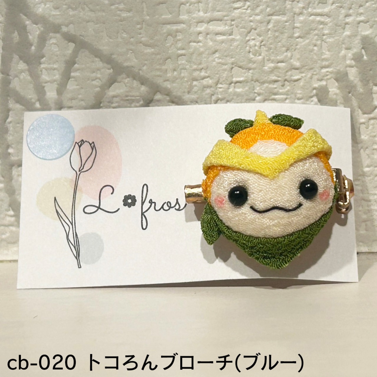 縮緬(ちりめん)で作られたトコろんのブローチです。